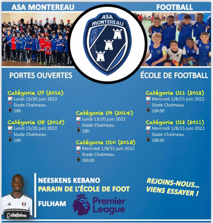 Alors que la fin de saison approche, des entraînements seront ouverts aux enfants de 5 à 12 ans (Garçons et filles) qui souhaitent découvrir le football à l'ASA Montereau.