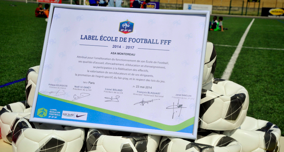 A l'issue de la journée féminines, le Président du district sud 77 et son staff technique ont remis le Label école de football à L'ASA MONTEREAU