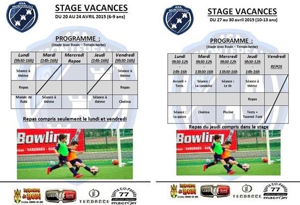 - Stage U6 à U9 du lundi 20 au vendredi 24 avril 2015.