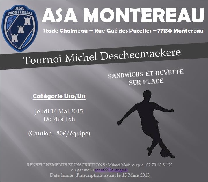 L'ASA Montereau organise son tournoi U10/U11 le jeudi 14 mai 2015.