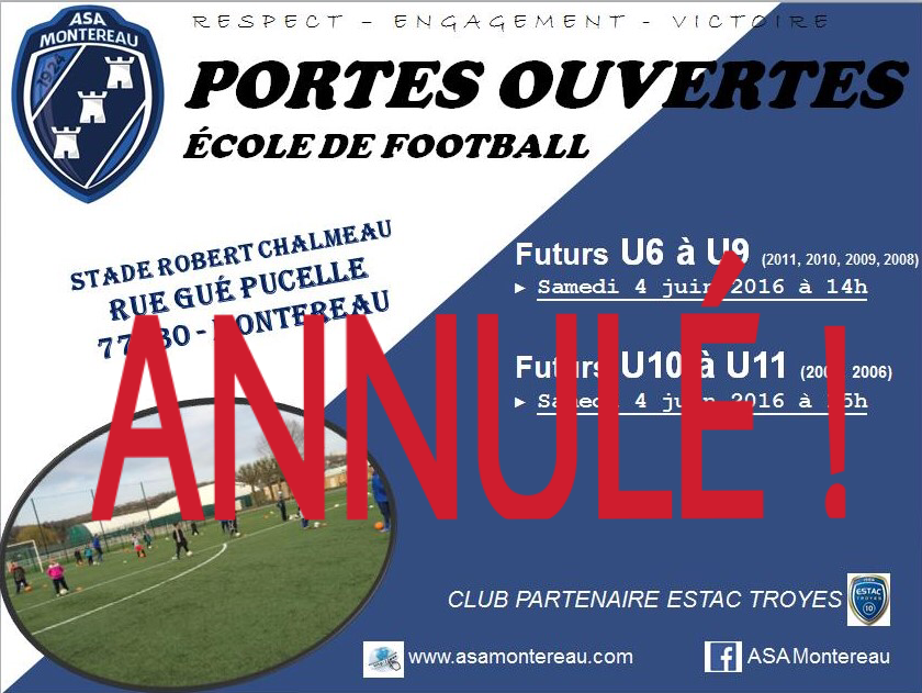 Par conséquent la PORTE OUVERTE école de football est ANNULÉE.