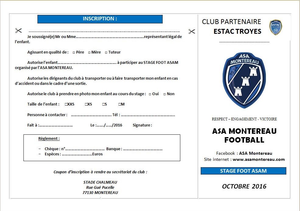 A ce jour il reste encore quelques places pour le STAGE FOOT ASAM version Octobre 2016.