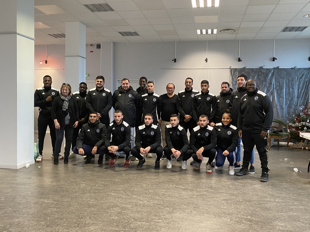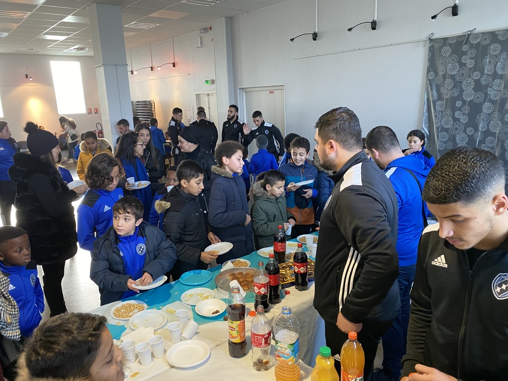 L’ASAM fête son goûter de Noel avec ses jeunes licenciés de l’école de foot ainsi que leurs parents et leurs éducateurs.. En présence du Maire de la ville présent à cette occasion 🔵⚪️