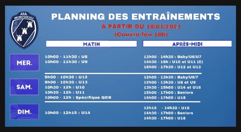 Nouveau planning suite à l'annonce du couvre-feu 18h-6h par le premier ministre.