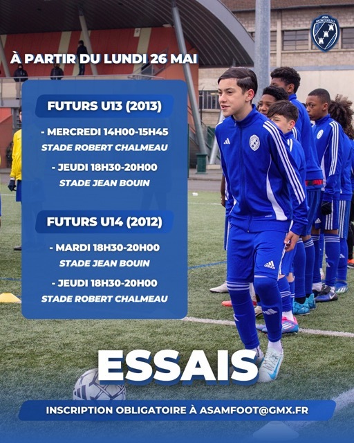 LโASA Montereau ouvre ses entraรฎnements aux futurs joueurs U13 ร U16 souhaitant effectuer des essais et rejoindre le club en vue de la saison prochaine !